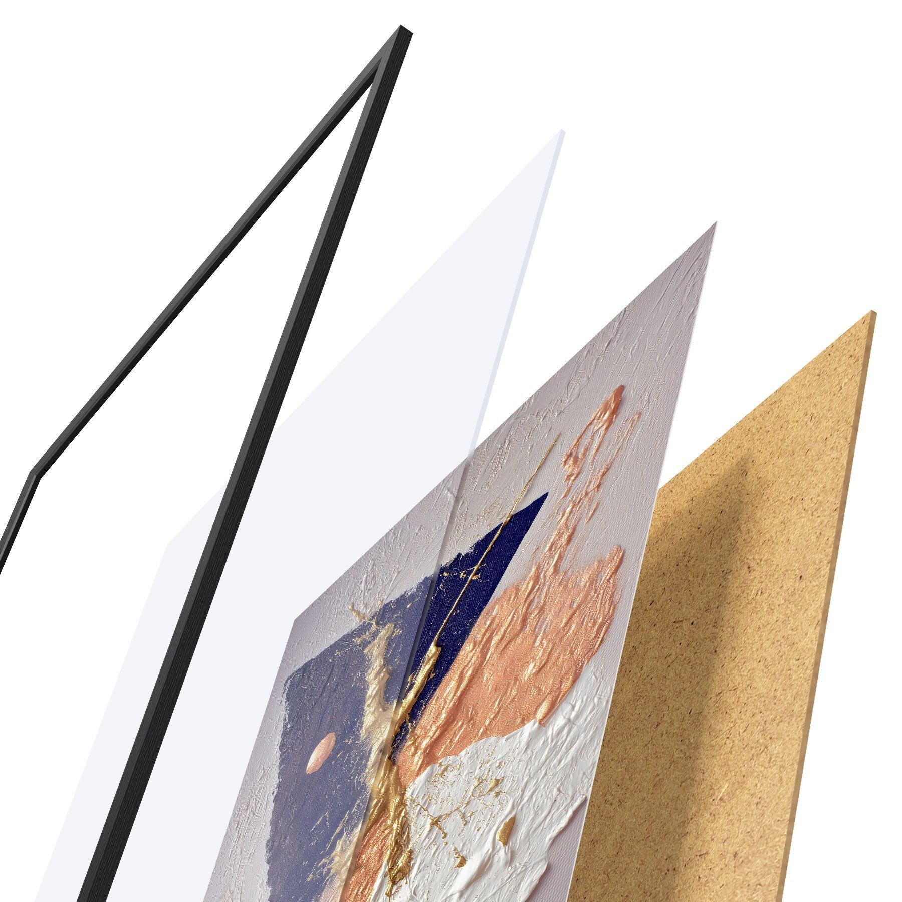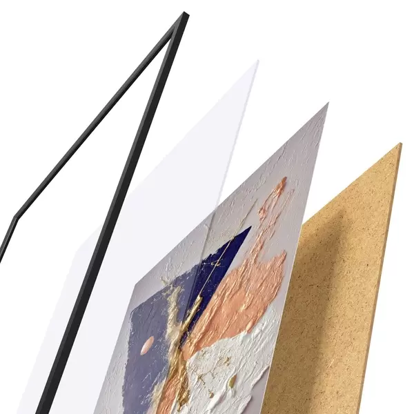 Das Poster besteht aus einem Rahmen, Plexiglas, einem gedruckten Bild und einer Rückwand aus Spanplatten. Dank der Halterungen auf der Rückseite kann das Poster sofort an die Wand gehängt werden.
