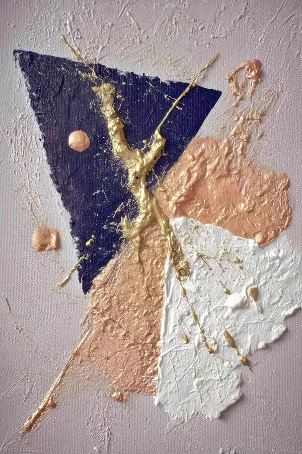 Poster Abstrakte Komposition mit einem dunkelblauen Dreieck und reliefartigen Pinselstrichen im Stil der Ölmalerei Nr f46953