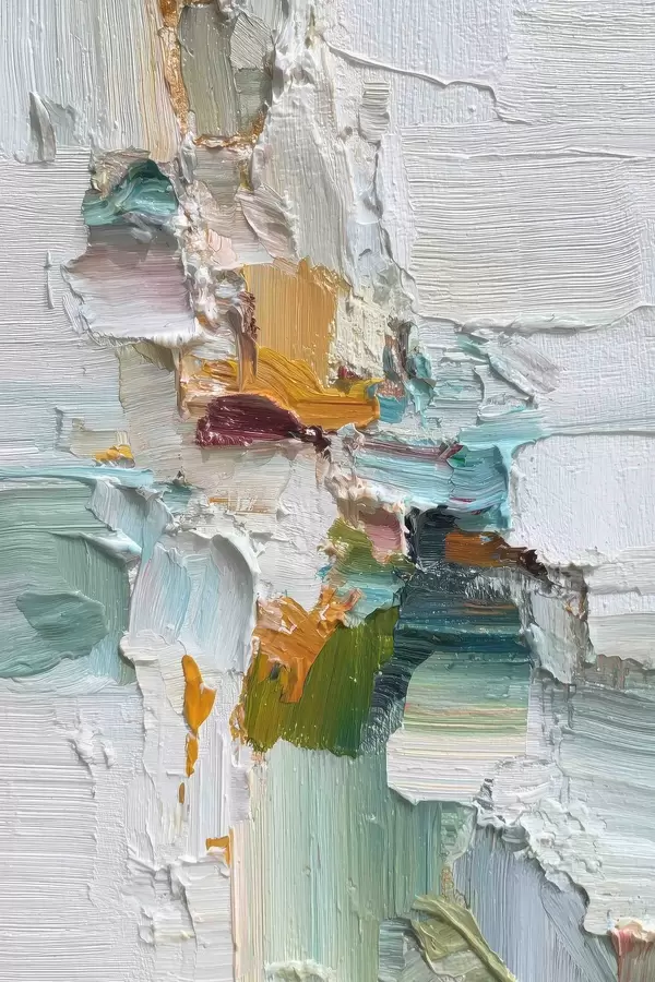 Poster Komposition mit türkisfarbenen und orangefarbenen Akzenten im Stil der Ölmalerei f46958
