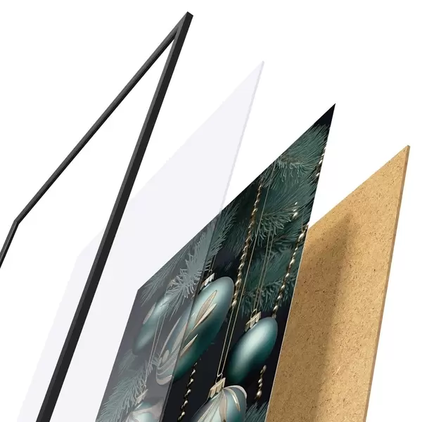 Das Poster besteht aus einem Rahmen, Plexiglas, einem gedruckten Bild und einer Rückwand aus Spanplatten. Dank der Halterungen auf der Rückseite kann das Poster sofort an die Wand gehängt werden.
