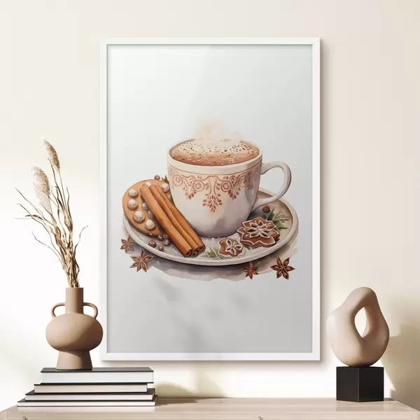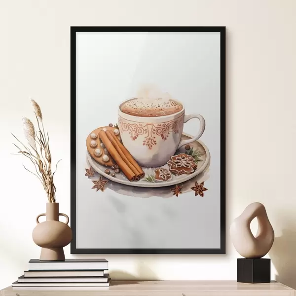 Poster Aquarellähnliche Zeichnung, Kaffee mit Zimt Nr f46983