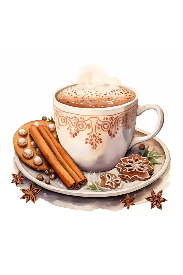 Poster Aquarellähnliche Zeichnung, Kaffee mit Zimt Nr f46983