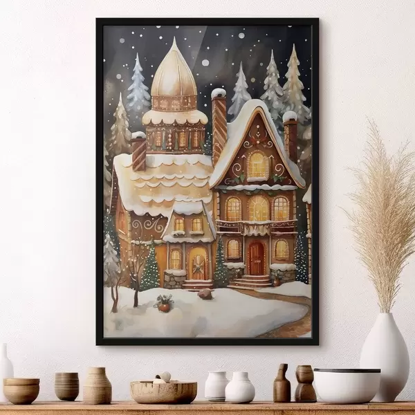 Poster Schneebedeckte Häuser im Wald Nr f46985