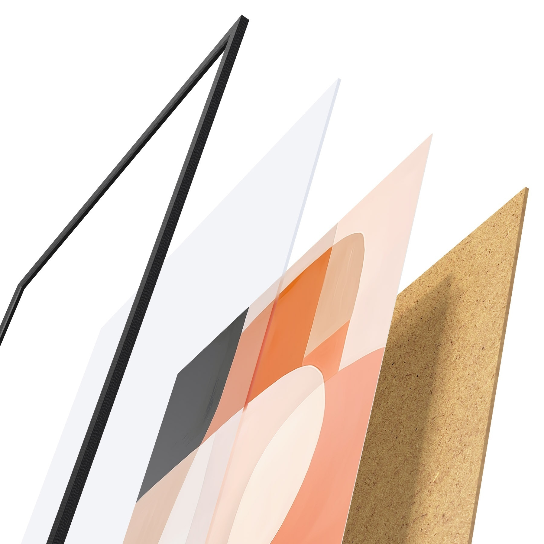 Das Poster besteht aus einem Rahmen, Plexiglas, einem gedruckten Bild und einer Rückwand aus Spanplatten. Dank der Halterungen auf der Rückseite kann das Poster sofort an die Wand gehängt werden.