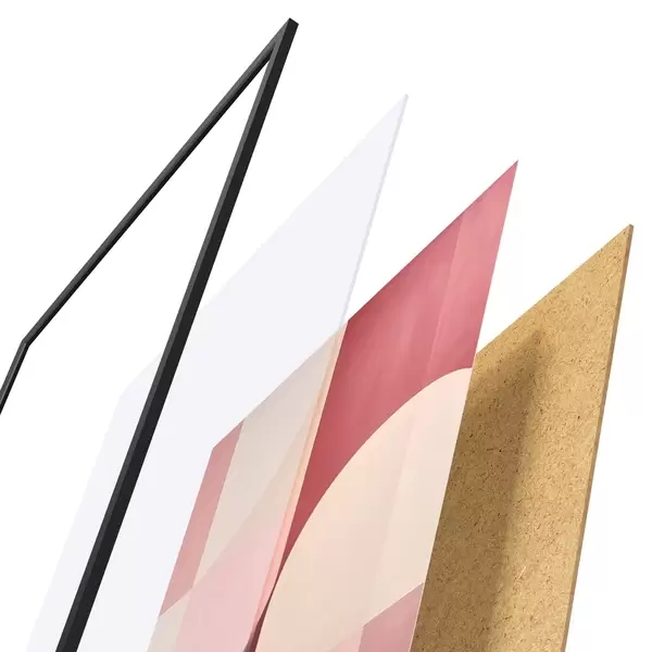 Das Poster besteht aus einem Rahmen, Plexiglas, einem gedruckten Bild und einer Rückwand aus Spanplatten. Dank der Halterungen auf der Rückseite kann das Poster sofort an die Wand gehängt werden.