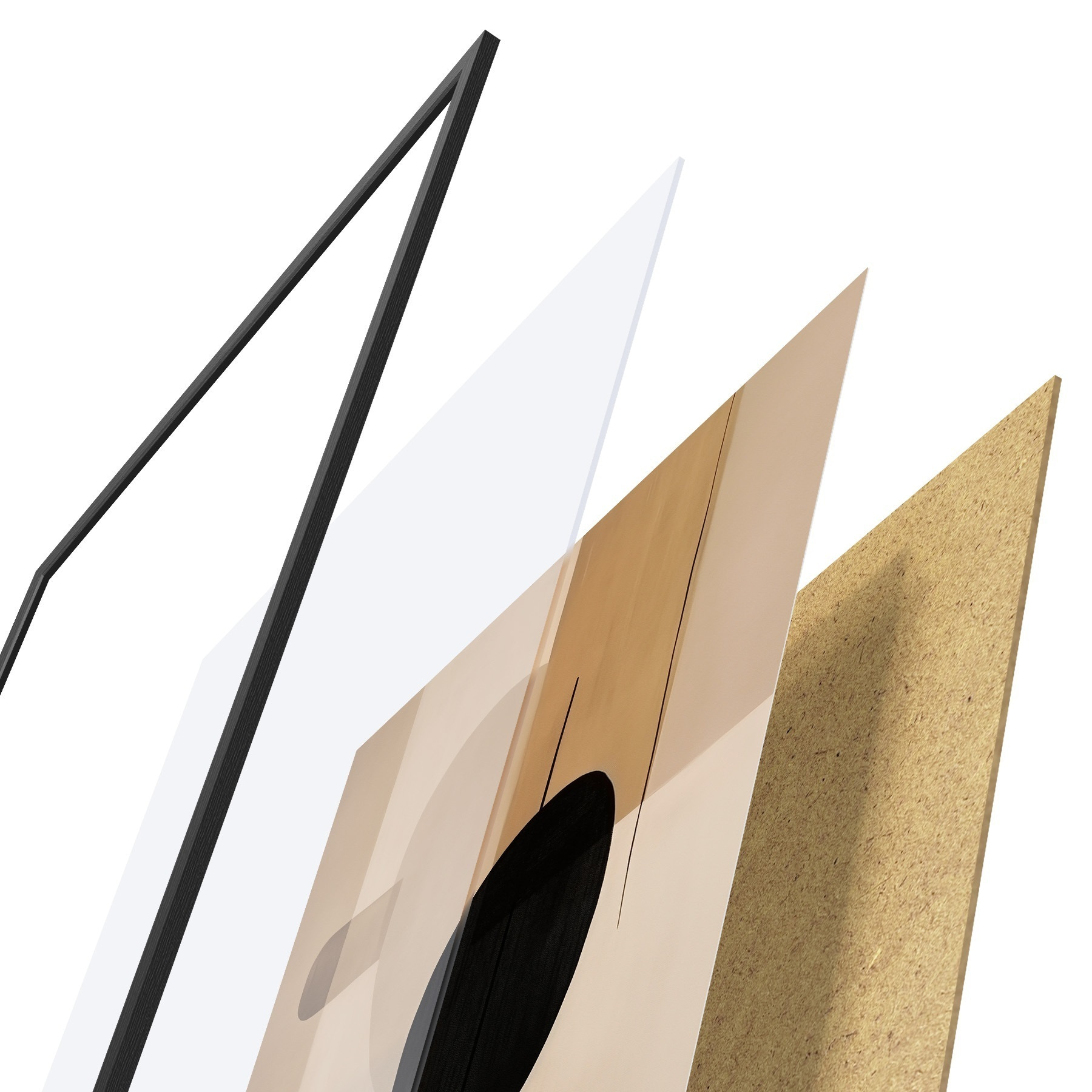 Das Poster besteht aus einem Rahmen, Plexiglas, einem gedruckten Bild und einer Rückwand aus Spanplatten. Dank der Halterungen auf der Rückseite kann das Poster sofort an die Wand gehängt werden.