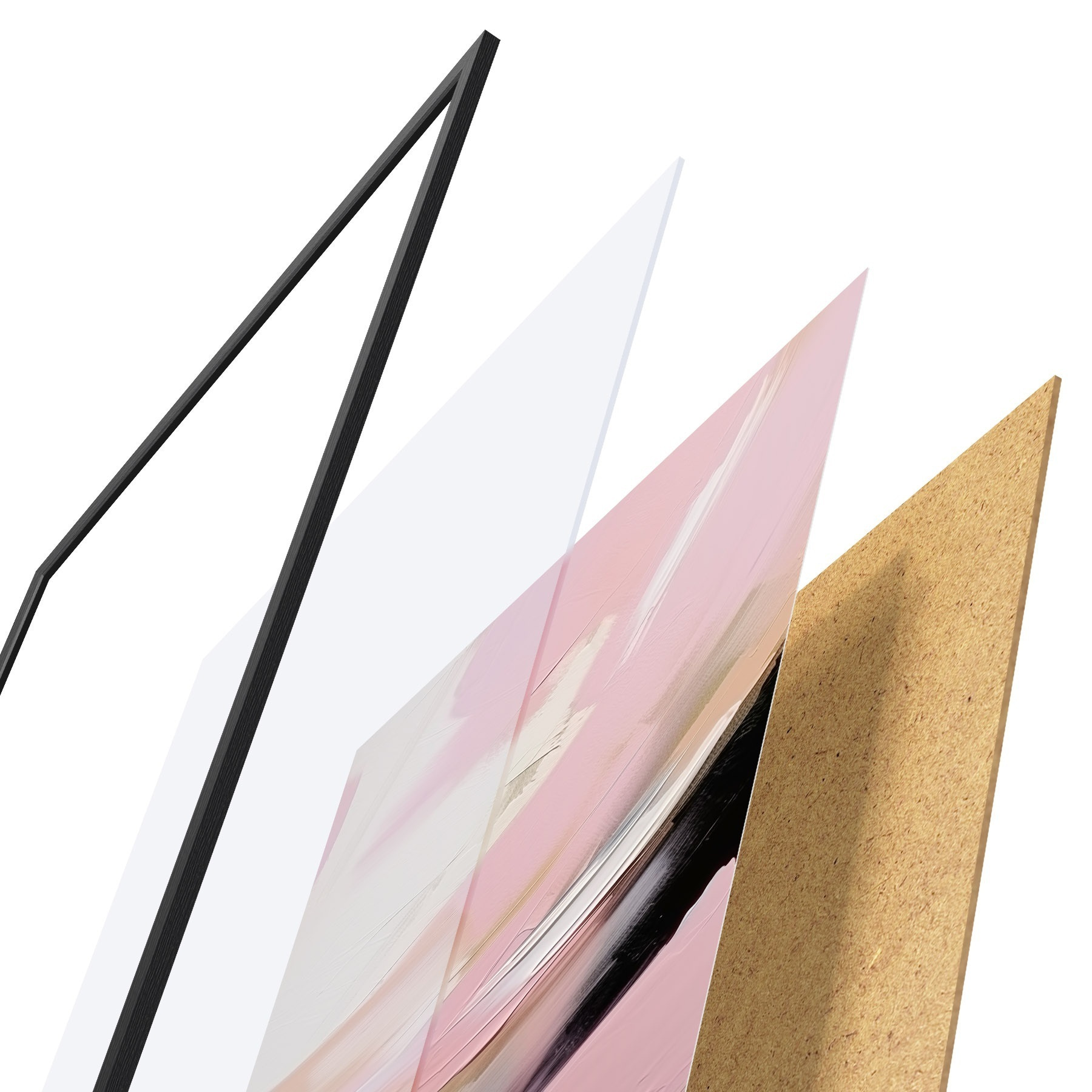 Das Poster besteht aus einem Rahmen, Plexiglas, einem gedruckten Bild und einer Rückwand aus Spanplatten. Dank der Halterungen auf der Rückseite kann das Poster sofort an die Wand gehängt werden.