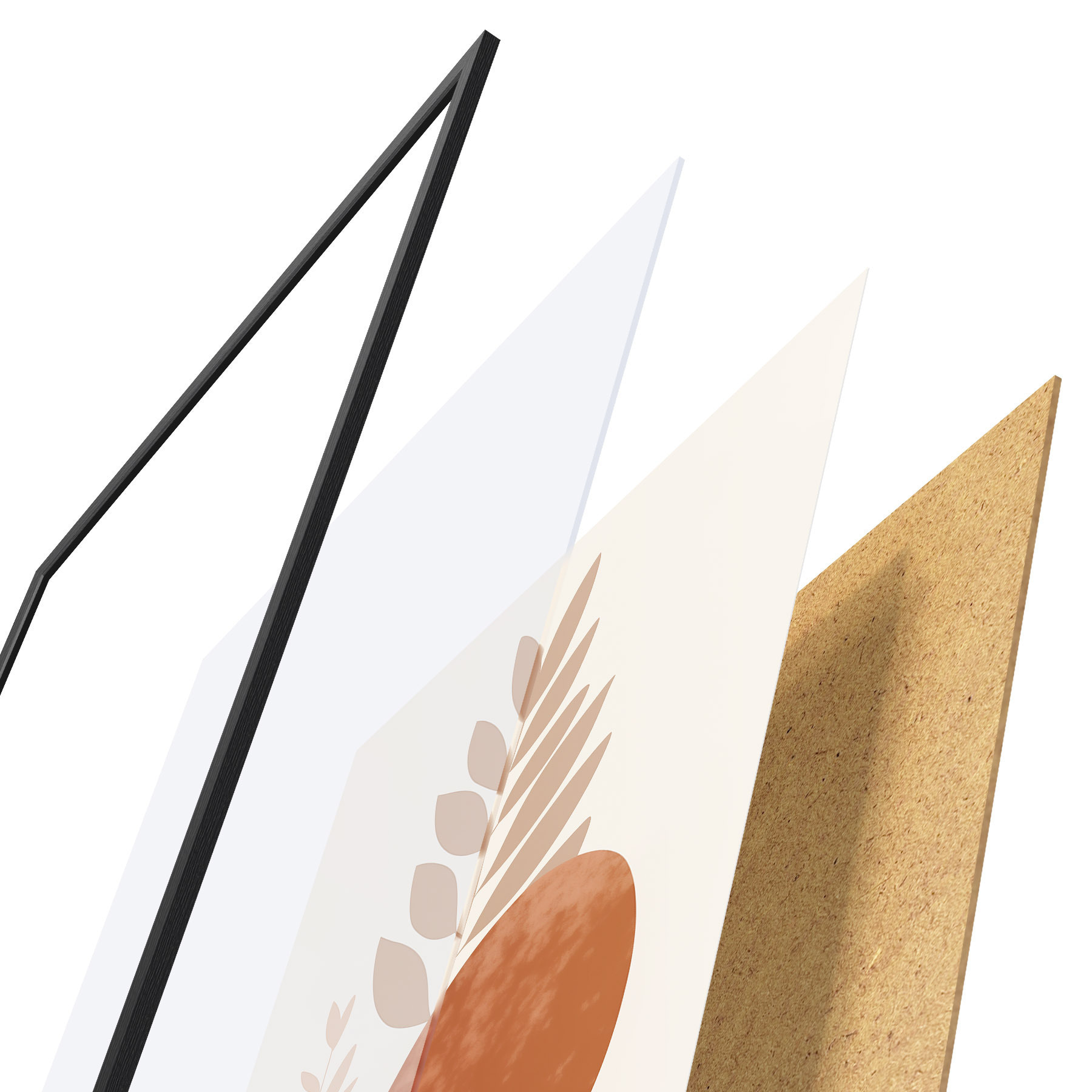 Das Poster besteht aus einem Rahmen, Plexiglas, einem gedruckten Bild und einer Rückwand aus Spanplatten. Dank der Halterungen auf der Rückseite kann das Poster sofort an die Wand gehängt werden.
