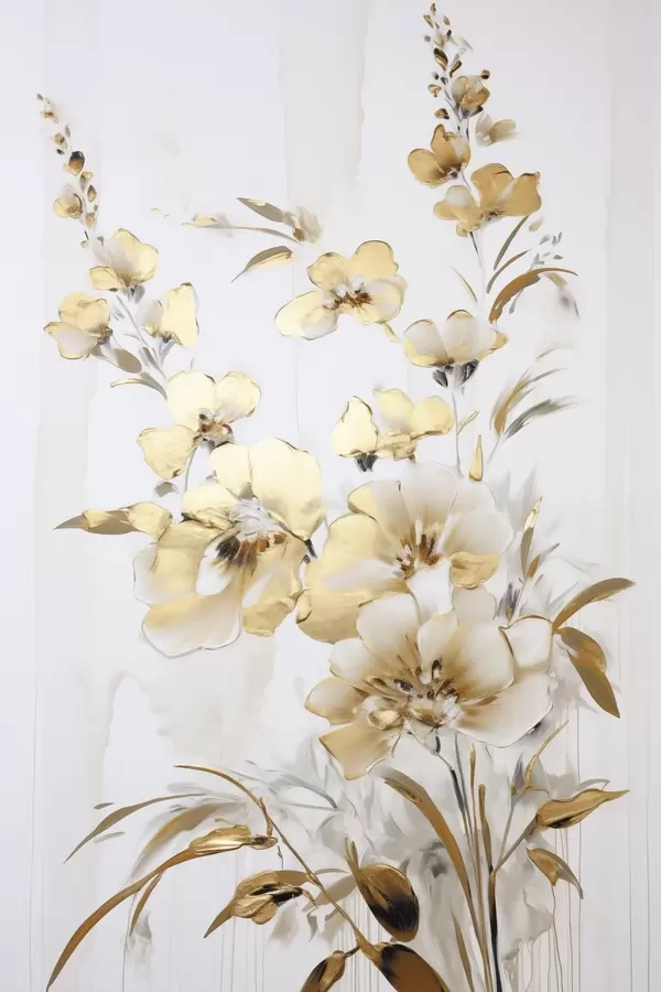 Poster Strukturierte gelbe Blüten und Blätter vor weißem Hintergrund, mit zarten Pinselstrichen Nr f47016