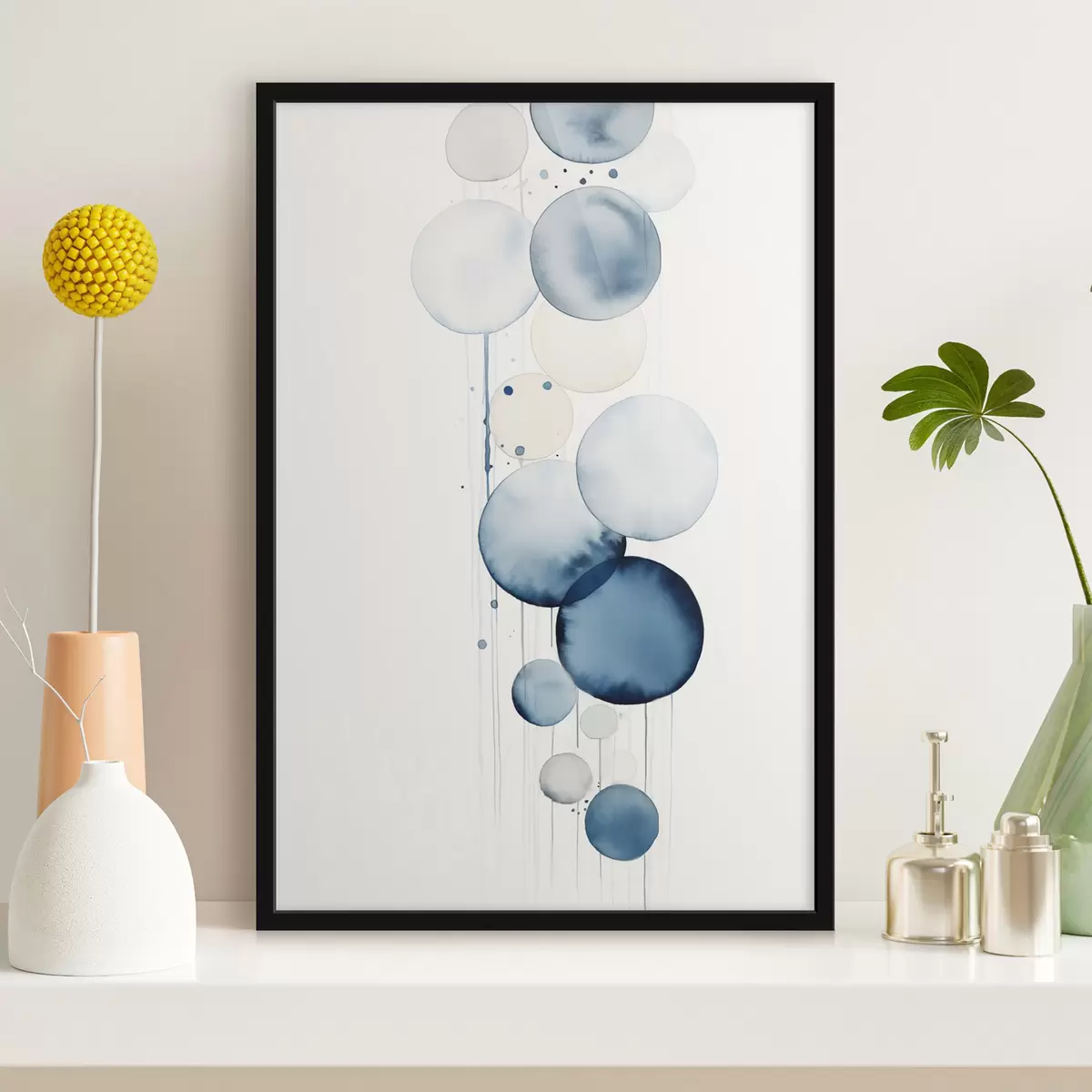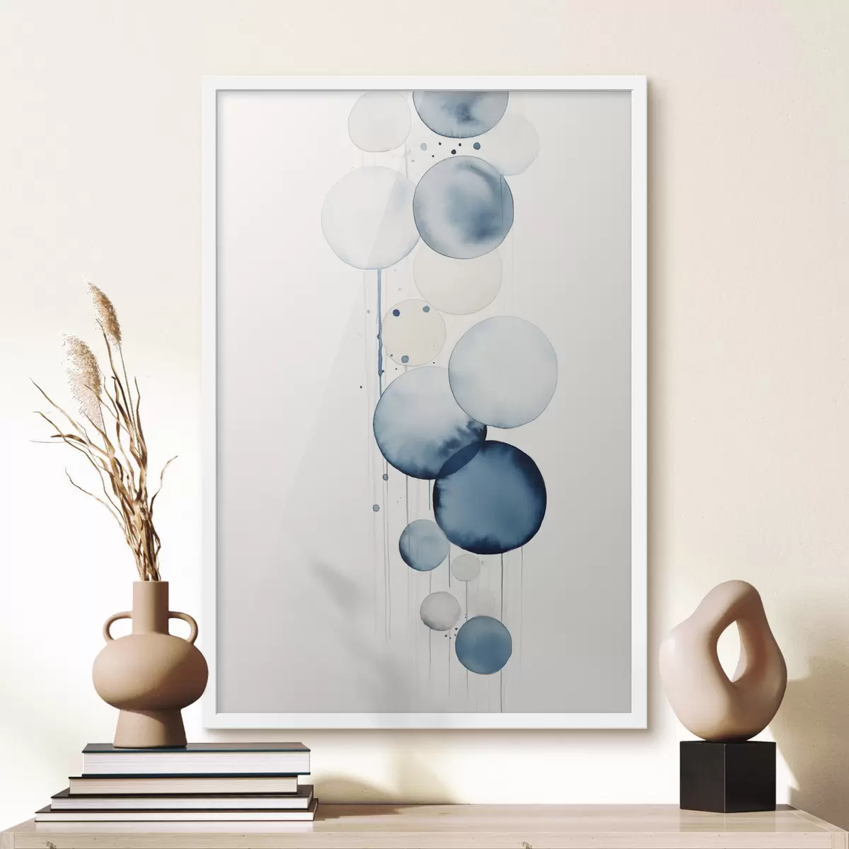 Poster Abstrakte, strukturierte blaue und weiße Wasserfarbenkreise unterschiedlicher Größe vor weißem Hintergrund Nr f47020