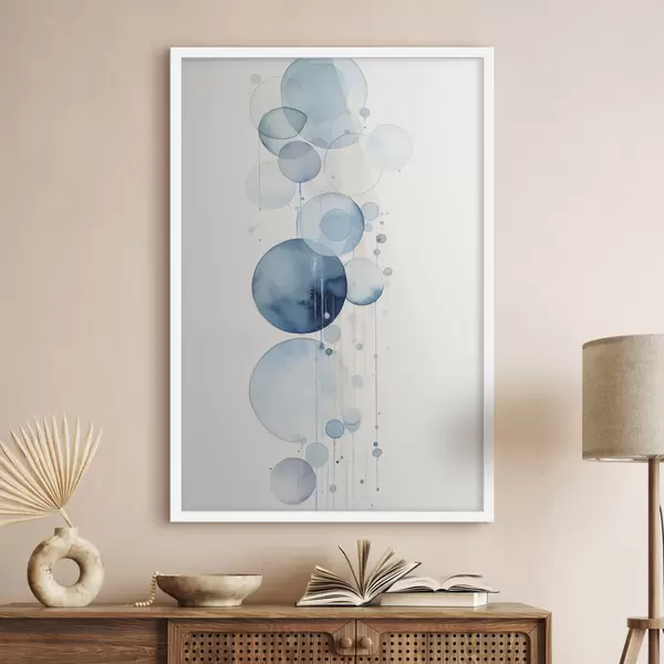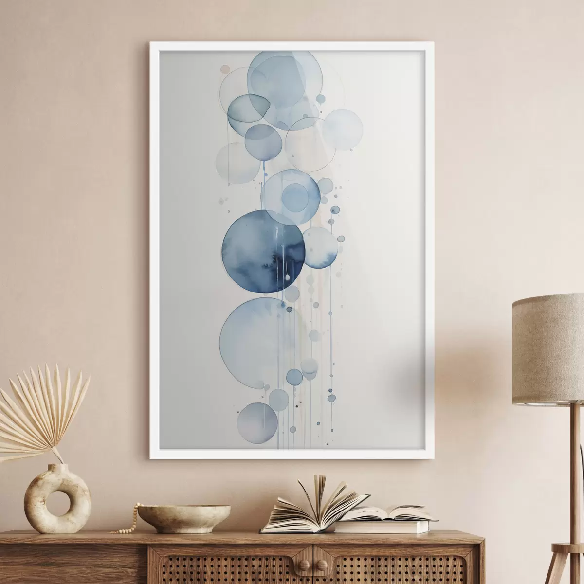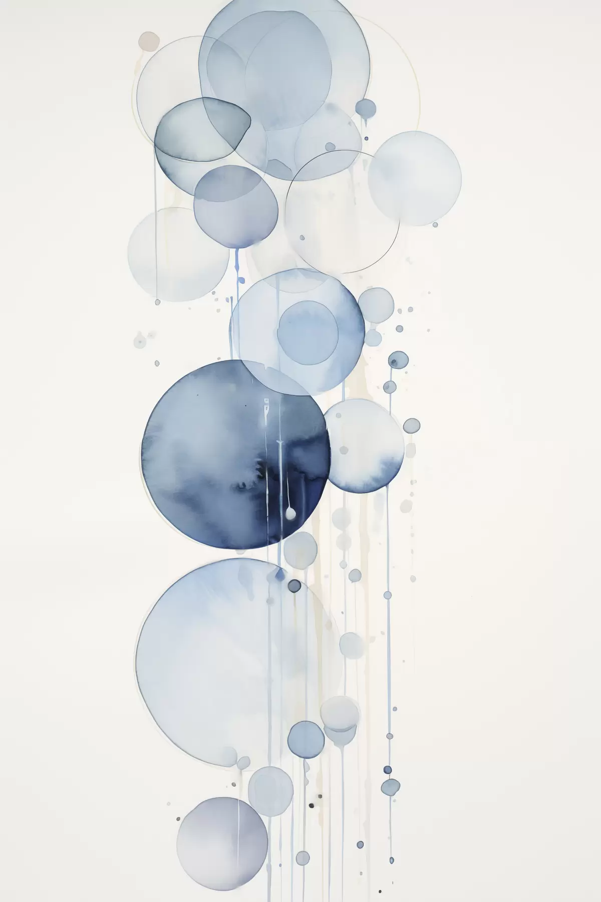 Poster Abstrakte, strukturierte blaue und weiße Wasserfarbenkreise unterschiedlicher Größe vor weißem Hintergrund Nr f47021