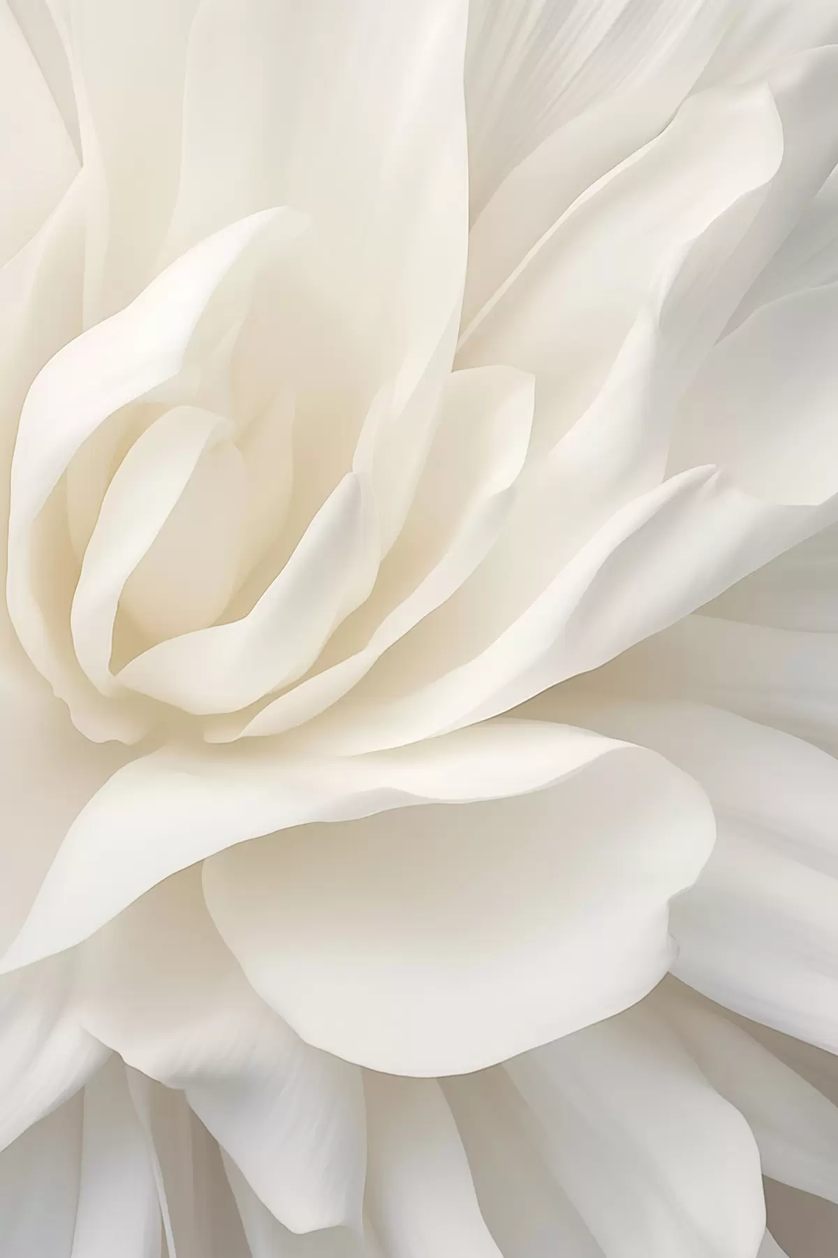 Poster Abstrakte weiße Blume mit zarten, geschichteten Blütenblättern, minimalistische Kunst Nr f47024