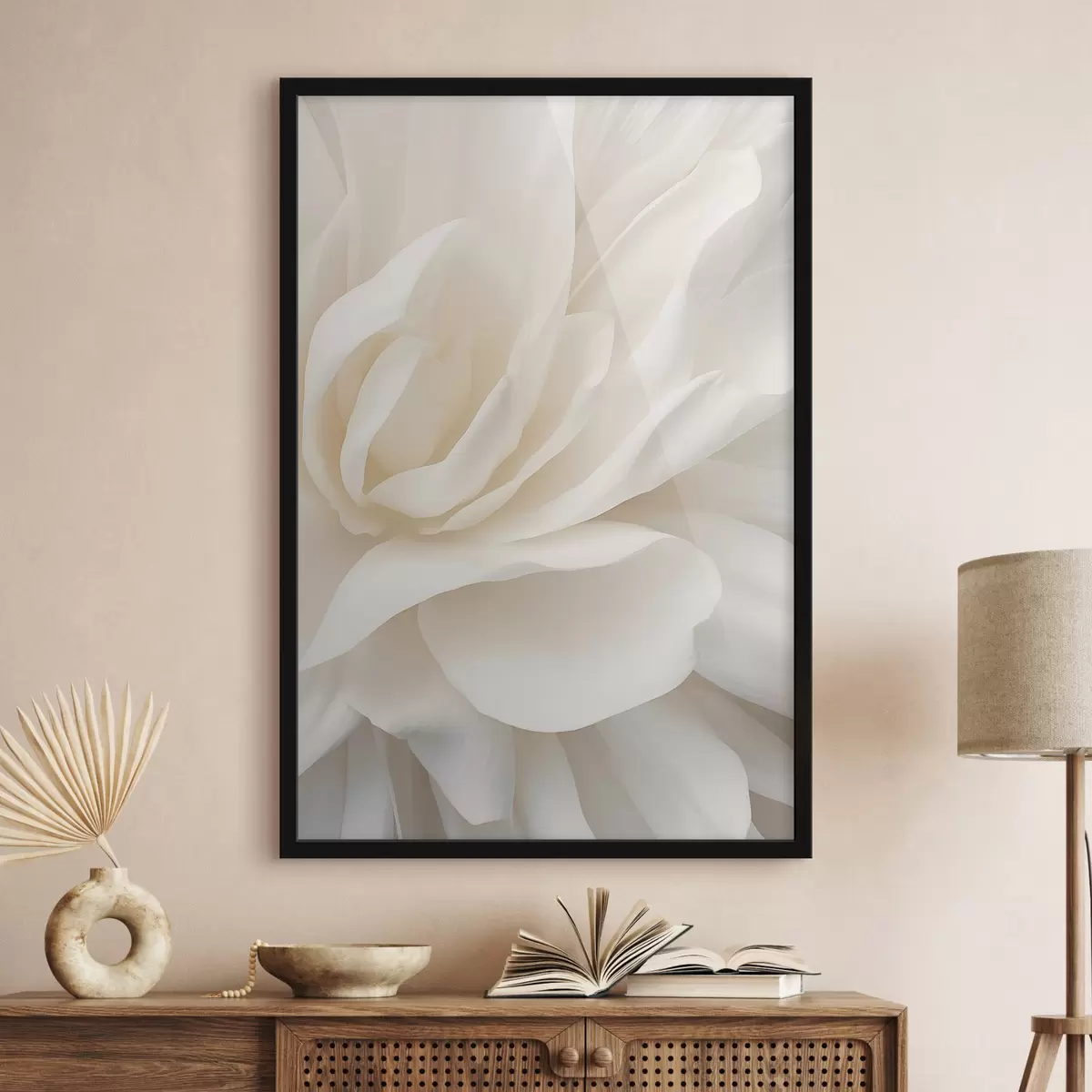 Poster Abstrakte weiße Blume mit zarten, geschichteten Blütenblättern, minimalistische Kunst f47024