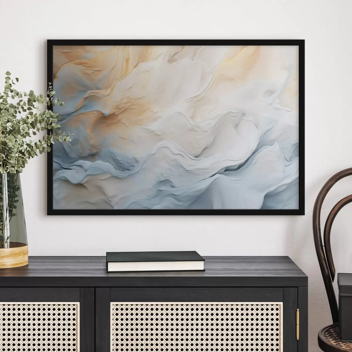 Das Poster besteht aus einem Rahmen, Plexiglas, einem gedruckten Bild und einer Rückwand aus Spanplatten. Dank der Halterungen auf der Rückseite kann das Poster sofort an die Wand gehängt werden.