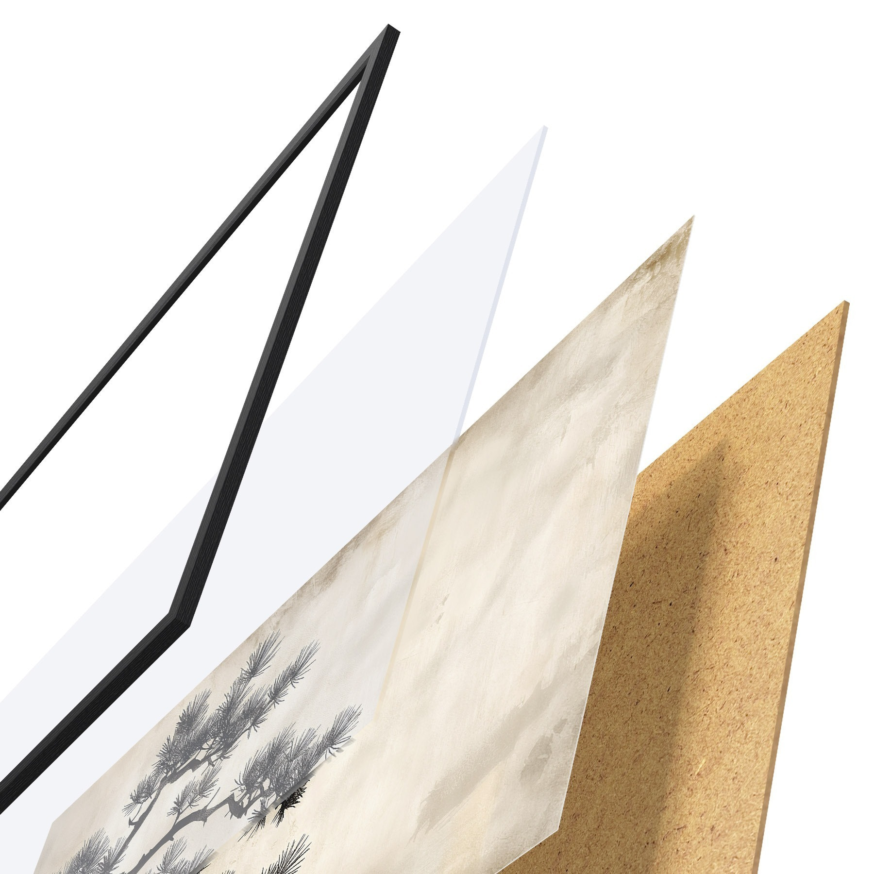 Das Poster besteht aus einem Rahmen, Plexiglas, einem gedruckten Bild und einer Rückwand aus Spanplatten. Dank der Halterungen auf der Rückseite kann das Poster sofort an die Wand gehängt werden.