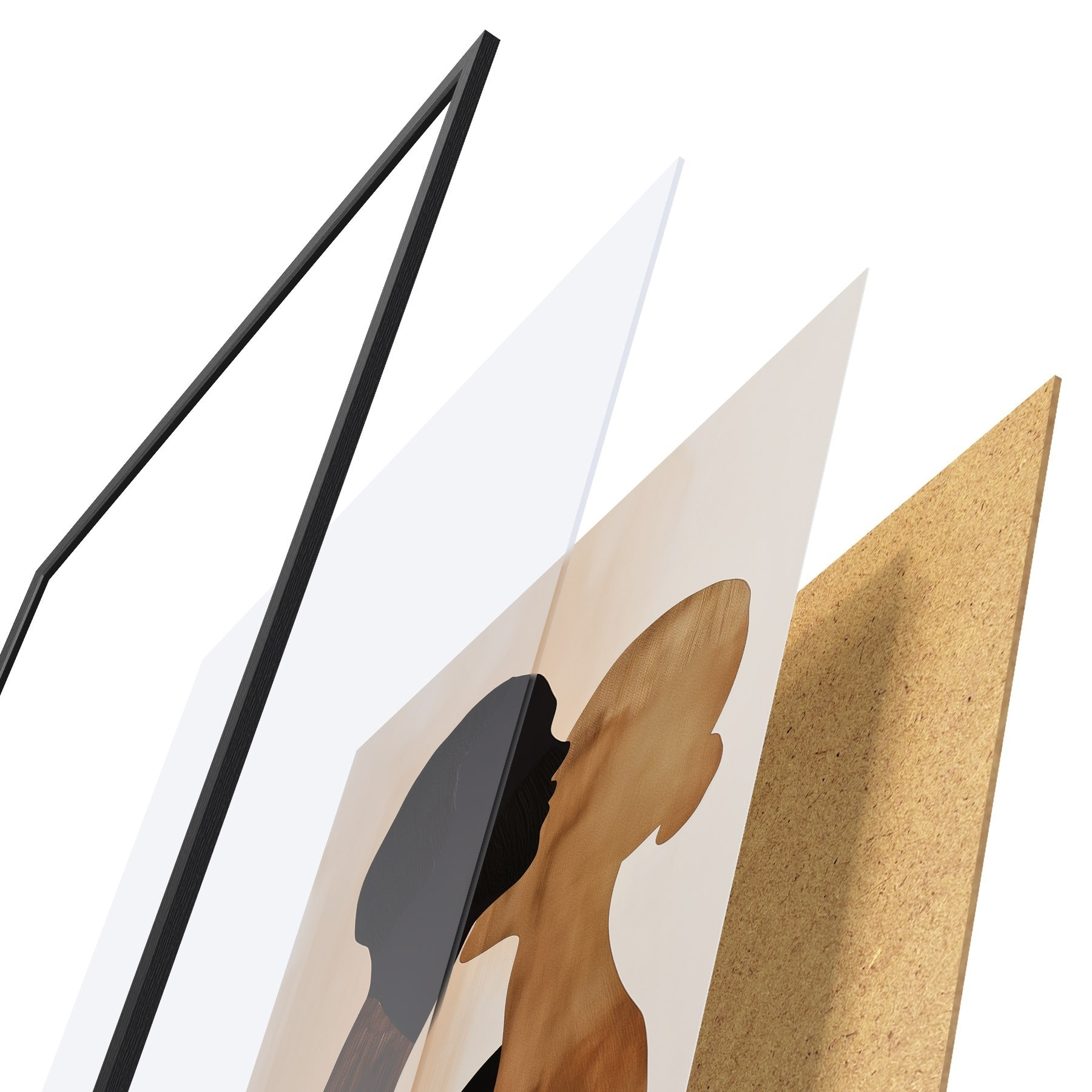 Das Poster besteht aus einem Rahmen, Plexiglas, einem gedruckten Bild und einer Rückwand aus Spanplatten. Dank der Halterungen auf der Rückseite kann das Poster sofort an die Wand gehängt werden.