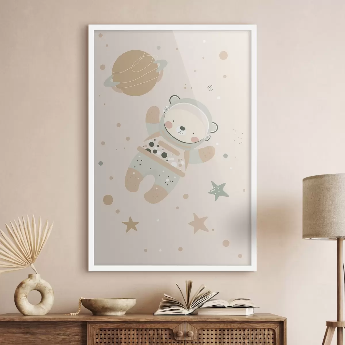 Das Poster besteht aus einem Rahmen, Plexiglas, einem gedruckten Bild und einer Rückwand aus Spanplatten. Dank der Halterungen auf der Rückseite kann das Poster sofort an die Wand gehängt werden.