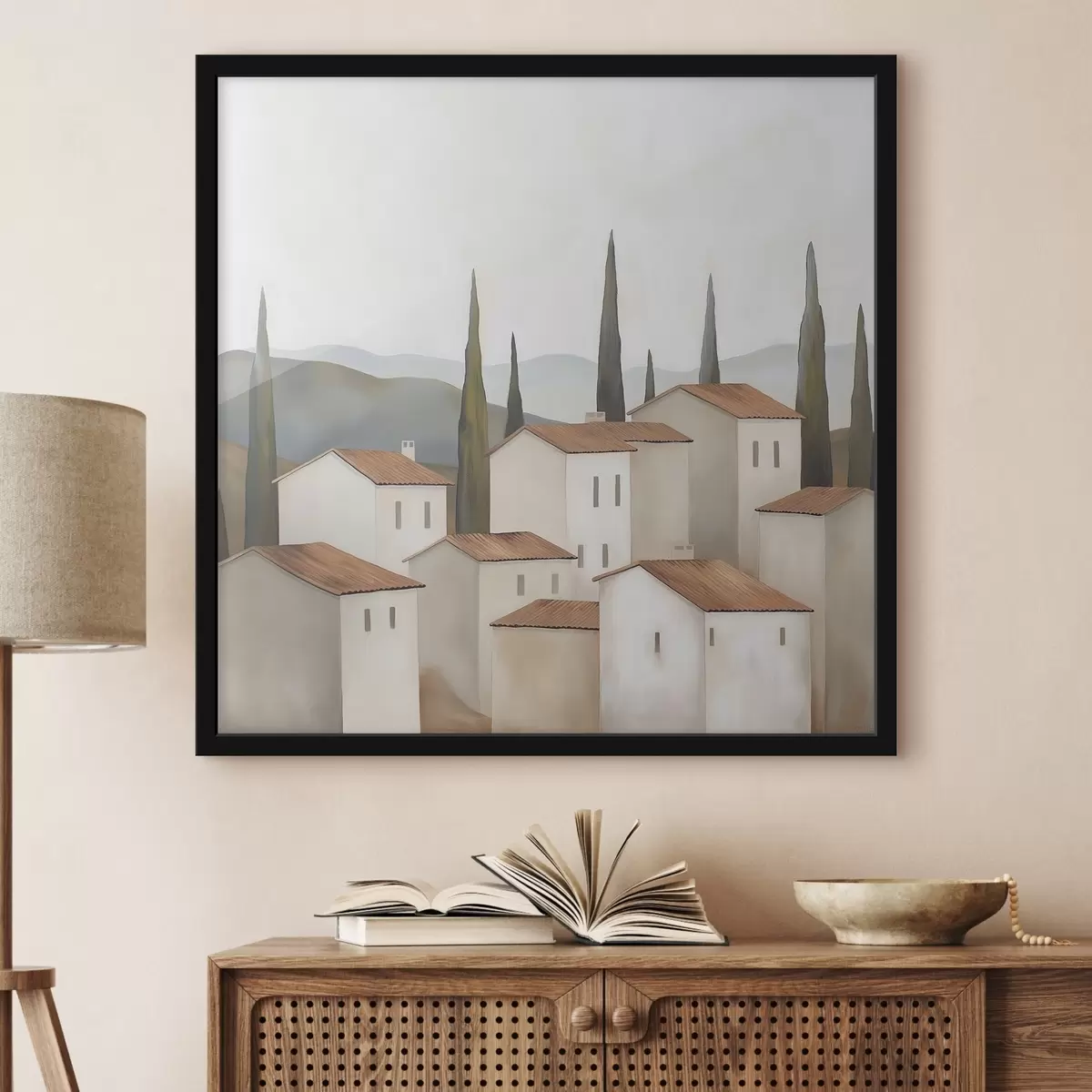 Das Poster besteht aus einem Rahmen, Plexiglas, einem gedruckten Bild und einer Rückwand aus Spanplatten. Dank der Halterungen auf der Rückseite kann das Poster sofort an die Wand gehängt werden.