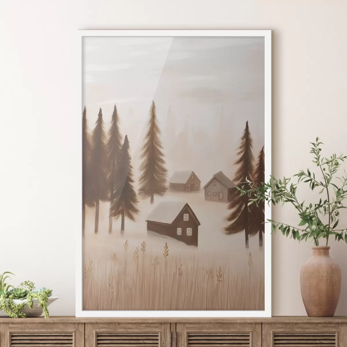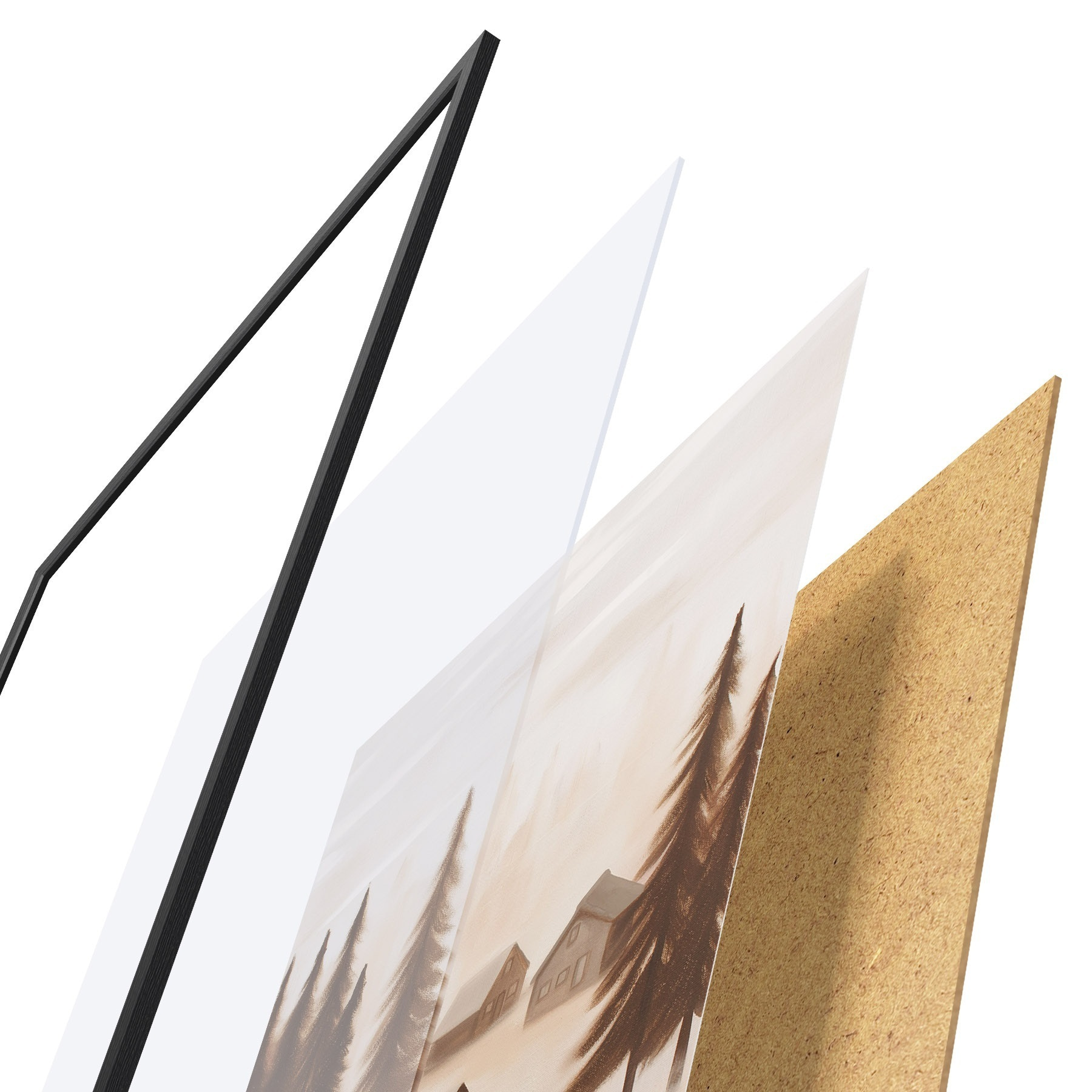 Das Poster besteht aus einem Rahmen, Plexiglas, einem gedruckten Bild und einer Rückwand aus Spanplatten. Dank der Halterungen auf der Rückseite kann das Poster sofort an die Wand gehängt werden.