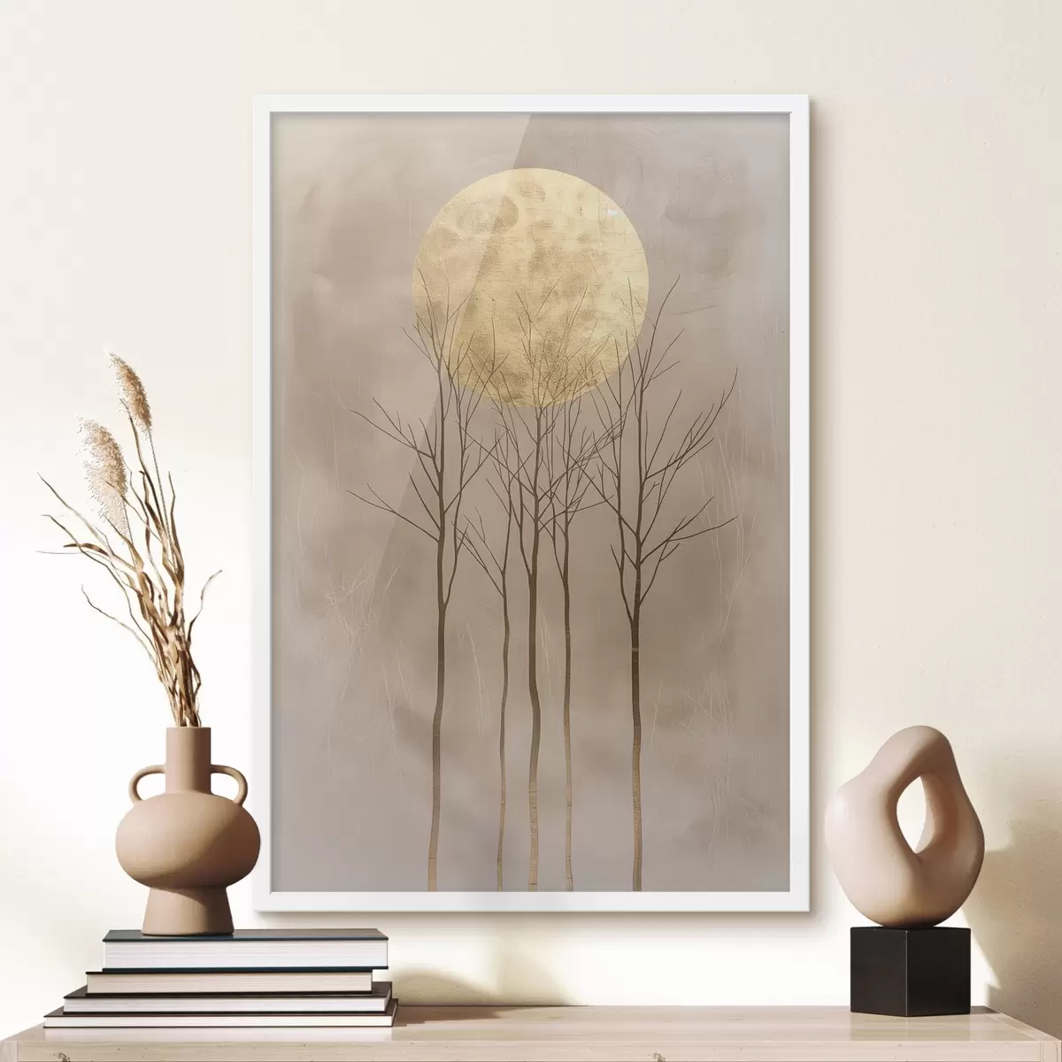 Das Poster besteht aus einem Rahmen, Plexiglas, einem gedruckten Bild und einer Rückwand aus Spanplatten. Dank der Halterungen auf der Rückseite kann das Poster sofort an die Wand gehängt werden.