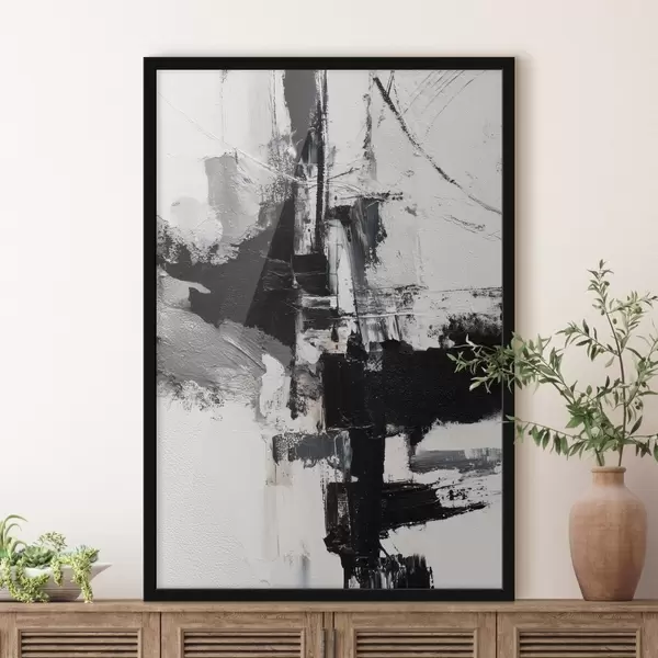 Poster Strukturierte Illustration mit kontrastierenden schwarzen und grauen Pinselstrichen im Stil eines Ölgemäldes Nr f47091