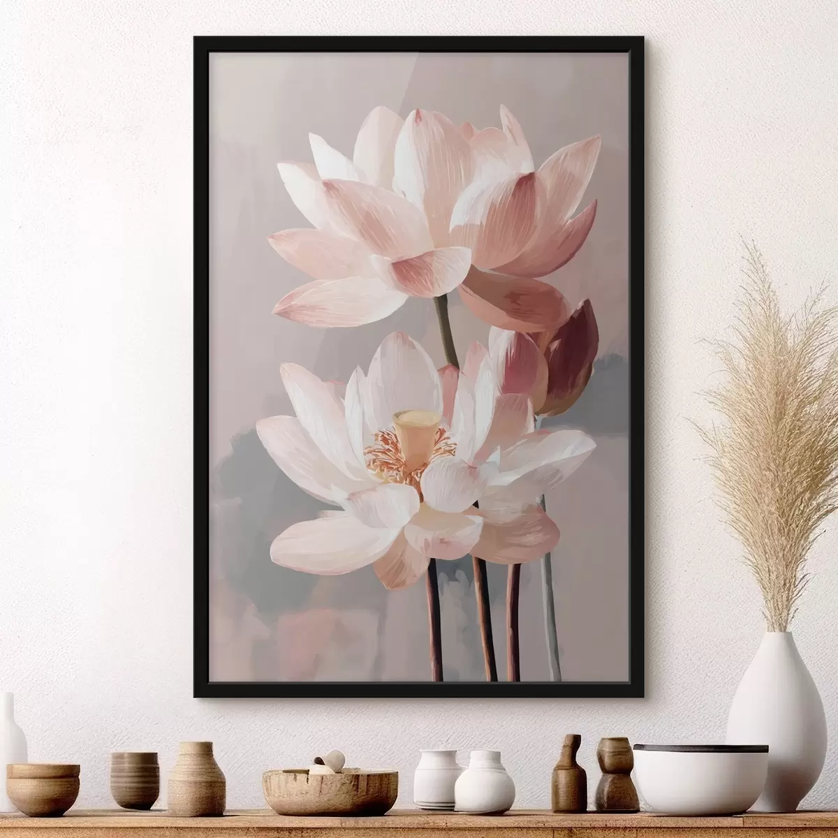 Poster Zarte rosa Lotusblumen auf pastellfarbenem Hintergrund im modernen Malstil Nr f47092