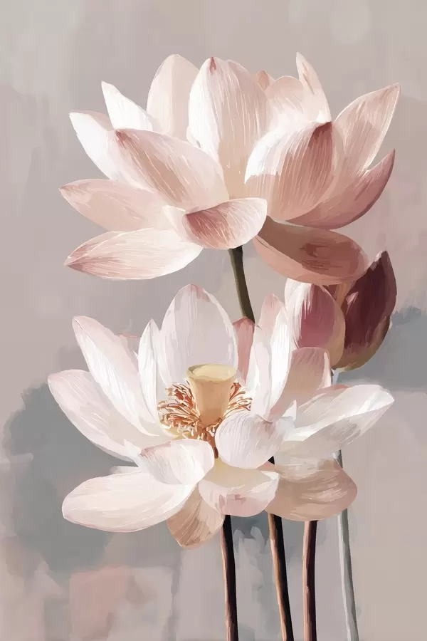 Poster Zarte rosa Lotusblumen auf pastellfarbenem Hintergrund im modernen Malstil Nr f47092