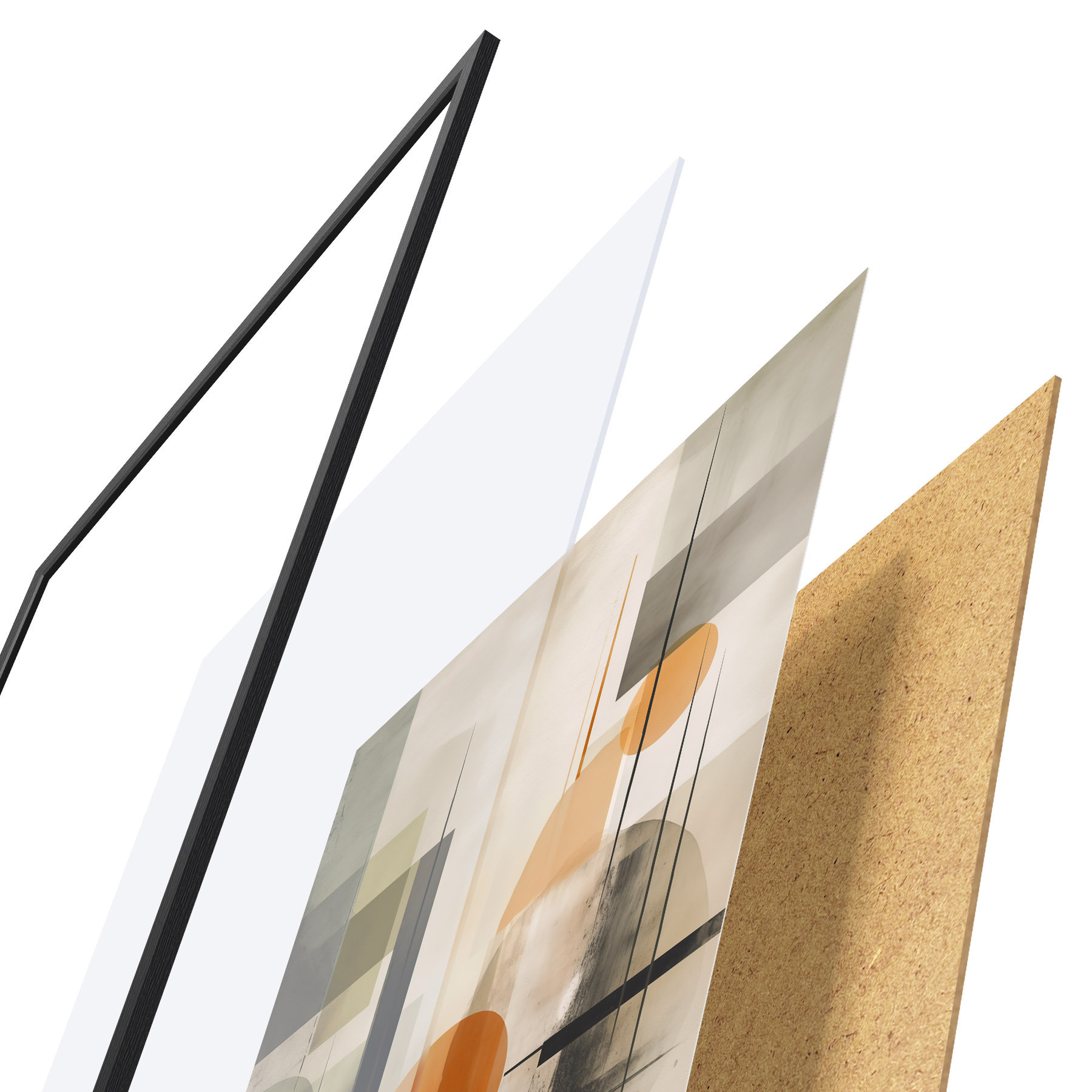 Das Poster besteht aus einem Rahmen, Plexiglas, einem gedruckten Bild und einer Rückwand aus Spanplatten. Dank der Halterungen auf der Rückseite kann das Poster sofort an die Wand gehängt werden.