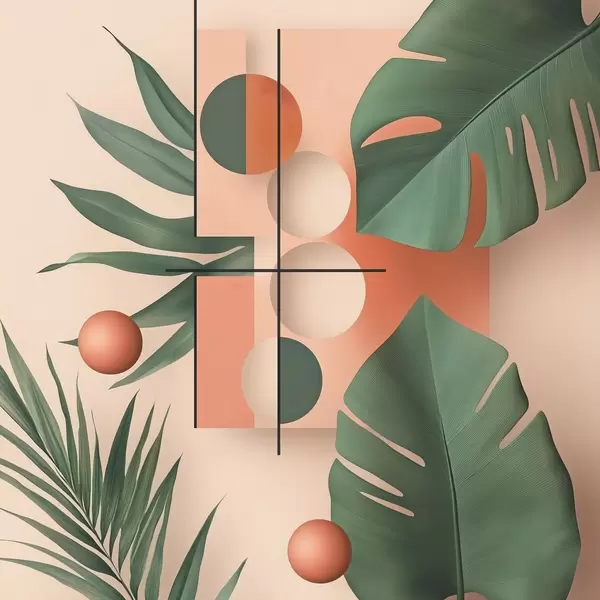 Poster Abstraktion mit großen tropischen Blättern f47099