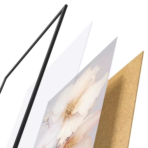 Das Poster besteht aus einem Rahmen, Plexiglas, einem gedruckten Bild und einer Rückwand aus Spanplatten. Dank der Halterungen auf der Rückseite kann das Poster sofort an die Wand gehängt werden.