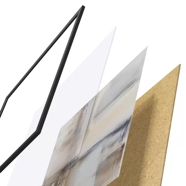 Das Poster besteht aus einem Rahmen, Plexiglas, einem gedruckten Bild und einer Rückwand aus Spanplatten. Dank der Halterungen auf der Rückseite kann das Poster sofort an die Wand gehängt werden.