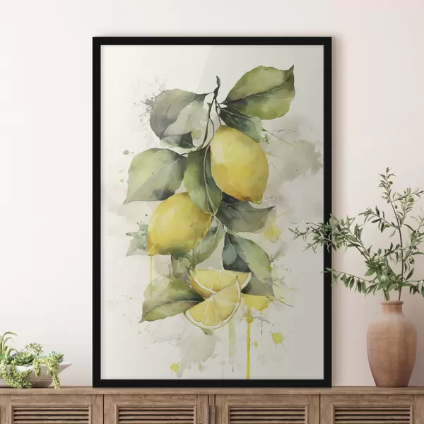 Poster Zweig mit Zitronen im Aquarellstil Nr f47124