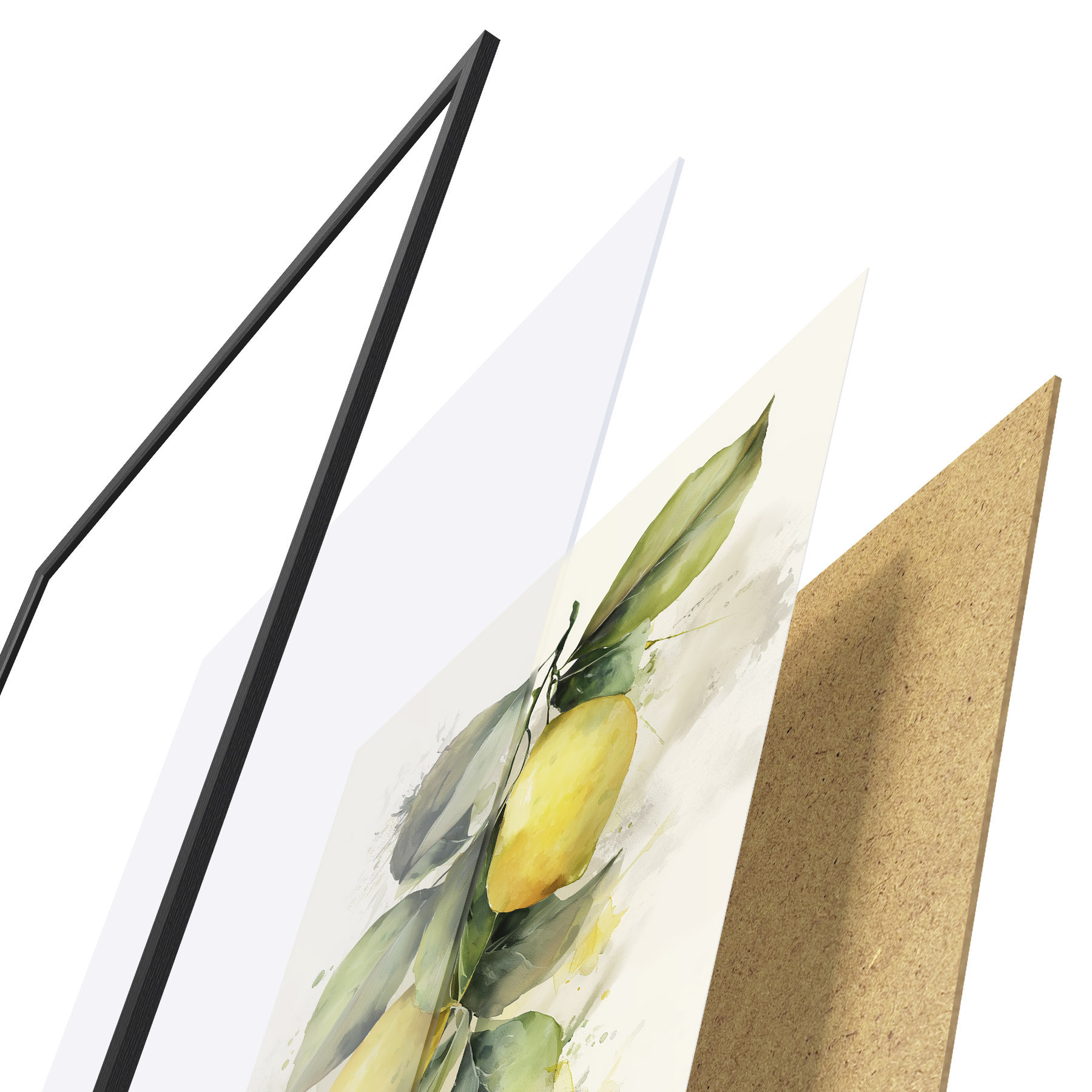 Das Poster besteht aus einem Rahmen, Plexiglas, einem gedruckten Bild und einer Rückwand aus Spanplatten. Dank der Halterungen auf der Rückseite kann das Poster sofort an die Wand gehängt werden.