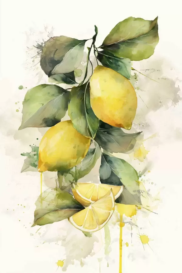 Poster Zweig mit Zitronen im Aquarellstil Nr f47124