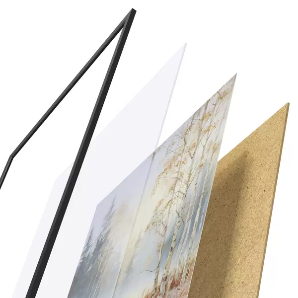 Das Poster besteht aus einem Rahmen, Plexiglas, einem gedruckten Bild und einer Rückwand aus Spanplatten. Dank der Halterungen auf der Rückseite kann das Poster sofort an die Wand gehängt werden.