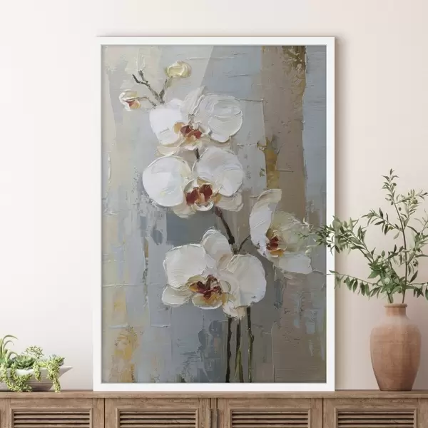 Poster weiße Orchideenblüten im Stil eines Ölgemäldes Nr f47132