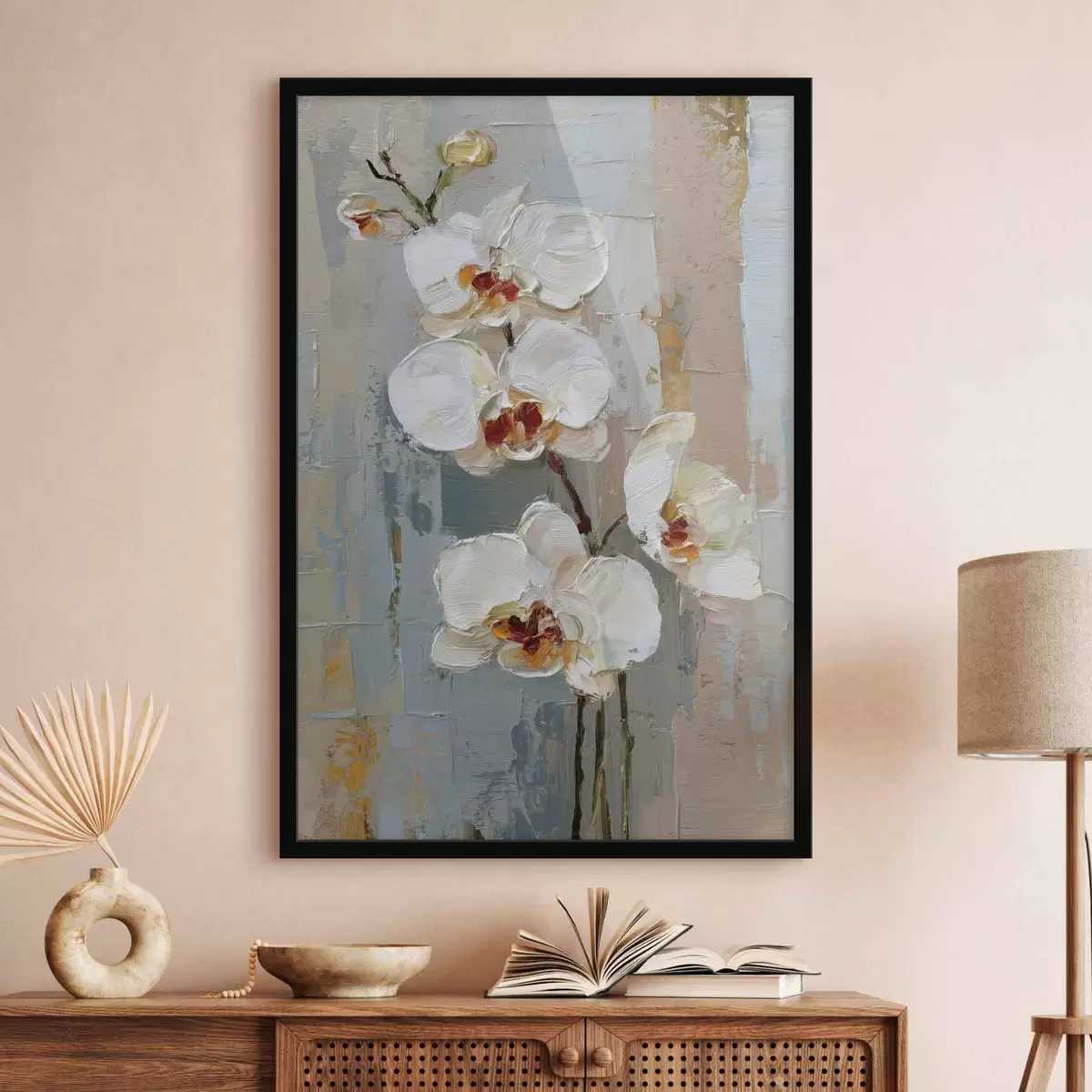 Poster weiße Orchideenblüten im Stil eines Ölgemäldes f47132
