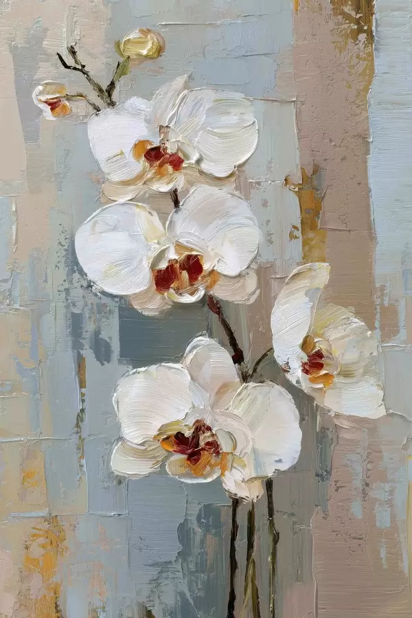 Poster weiße Orchideenblüten im Stil eines Ölgemäldes Nr f47132