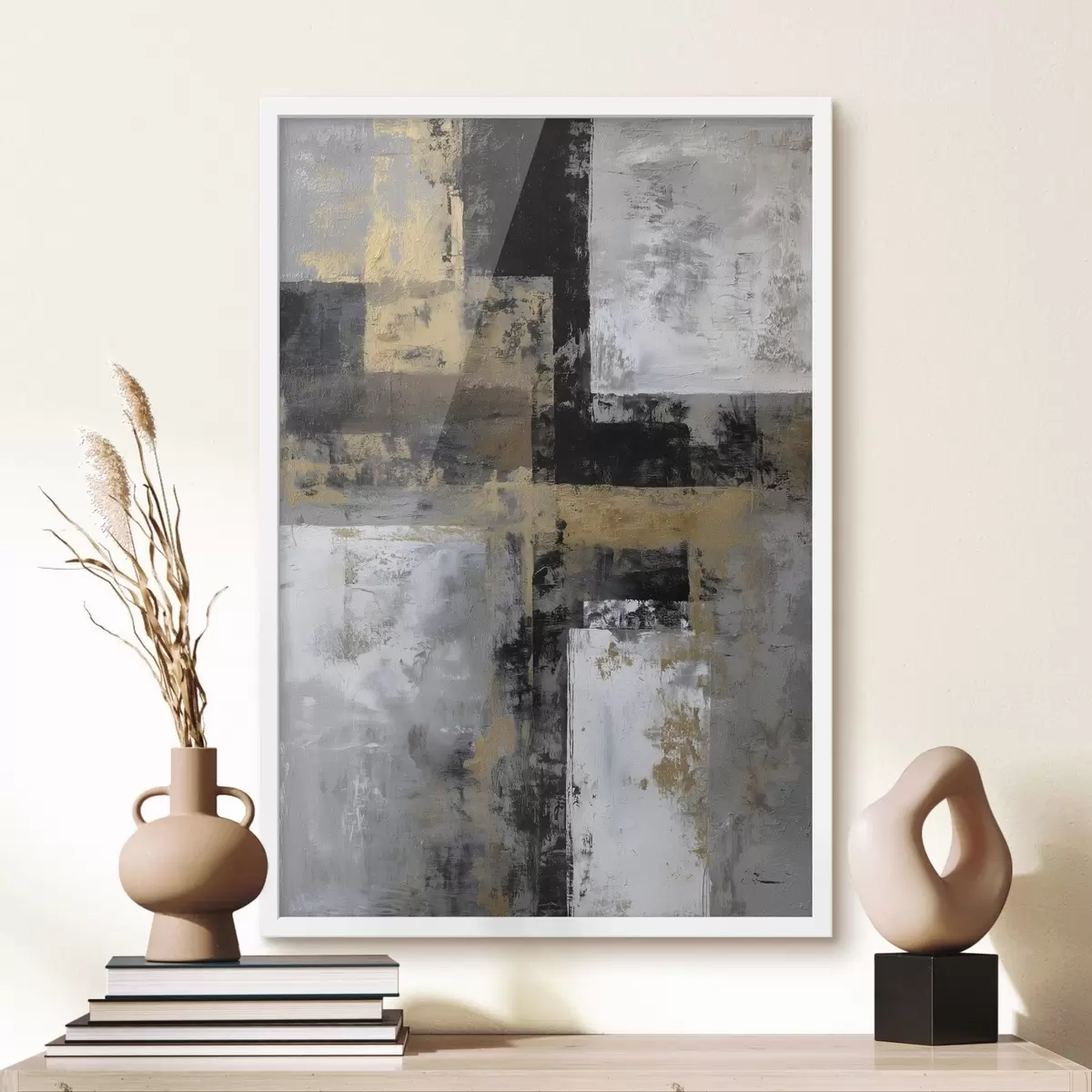 Poster zeitgenössische strukturelle Abstraktion in Schwarz-, Grau- und Weißtönen f47139