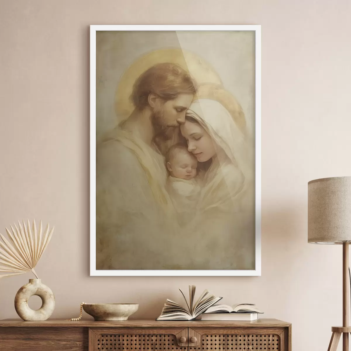 Poster Die Jungfrau Maria und Josef mit dem Jesuskind im Stil eines alten Freskos f47141