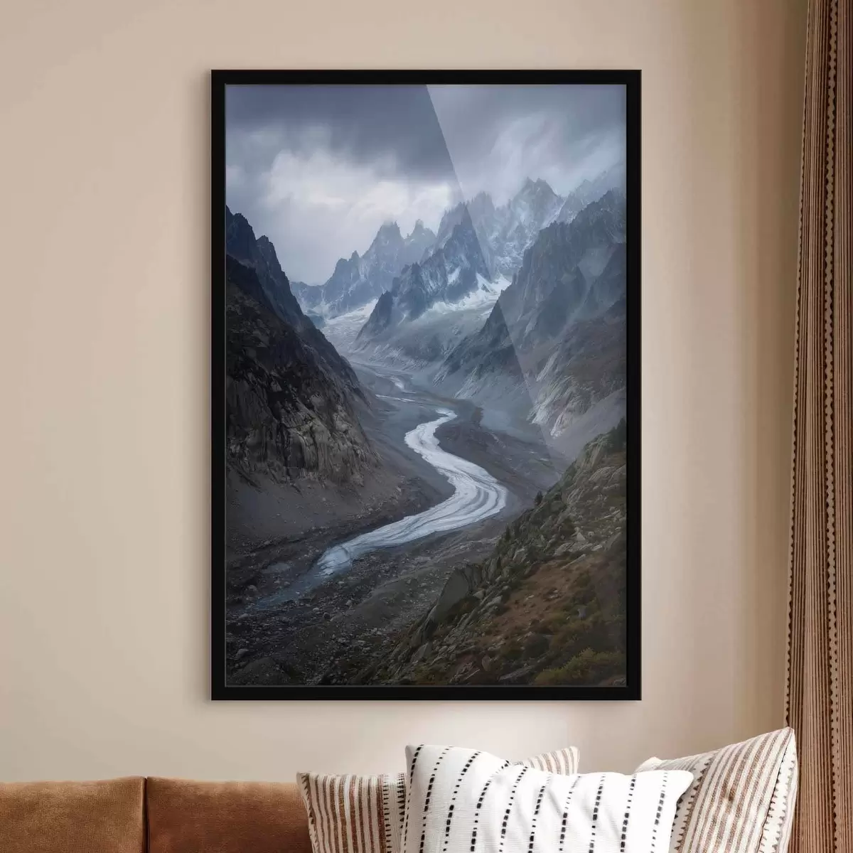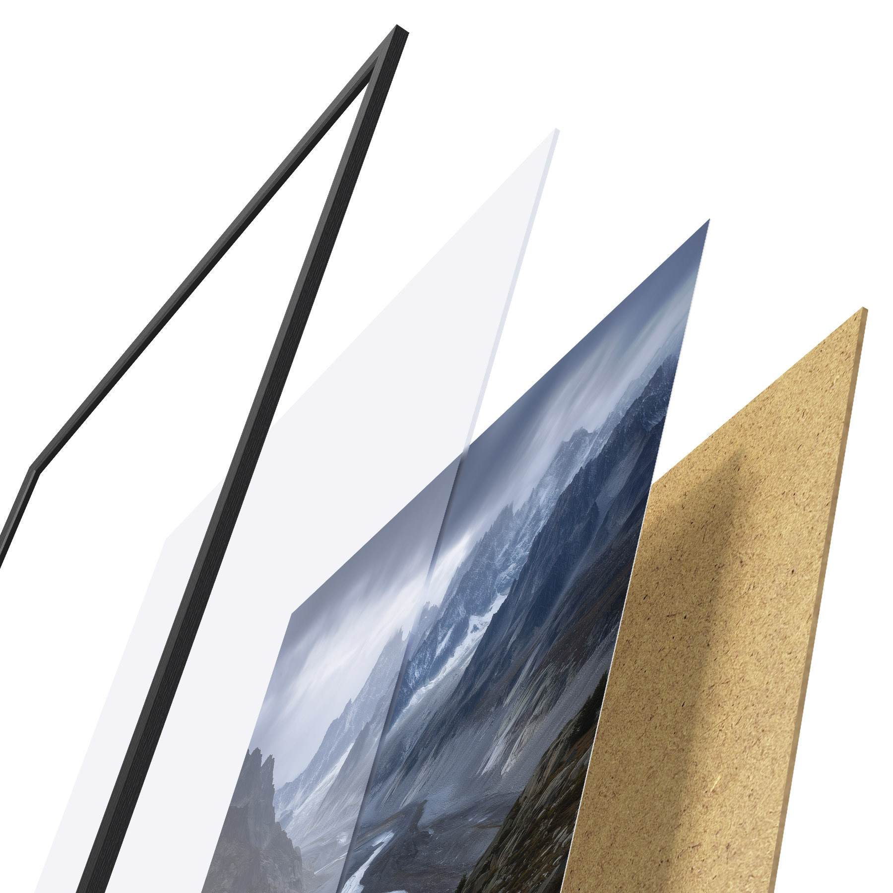 Das Poster besteht aus einem Rahmen, Plexiglas, einem gedruckten Bild und einer Rückwand aus Spanplatten. Dank der Halterungen auf der Rückseite kann das Poster sofort an die Wand gehängt werden.
