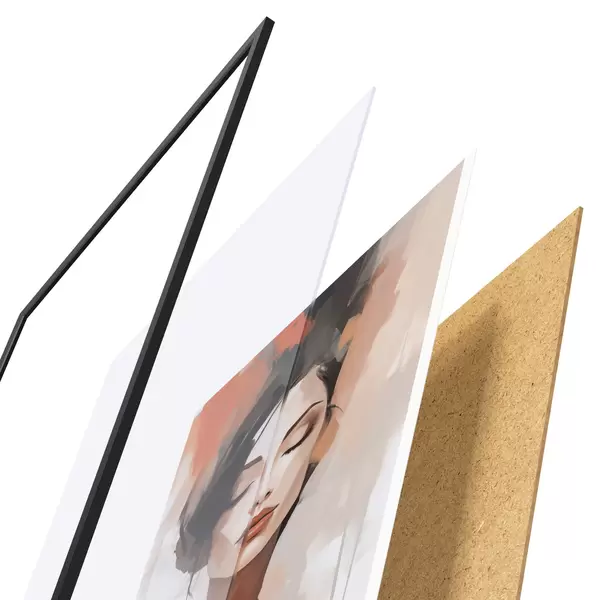 Das Poster besteht aus einem Rahmen, Plexiglas, einem gedruckten Bild und einer Rückwand aus Spanplatten. Dank der Halterungen auf der Rückseite kann das Poster sofort an die Wand gehängt werden.