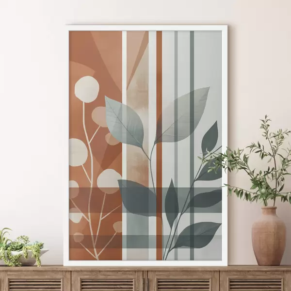 Poster Abstraktion mit Zweigen und Blättern f47248