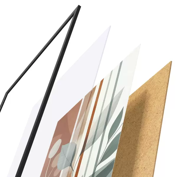 Das Poster besteht aus einem Rahmen, Plexiglas, einem gedruckten Bild und einer Rückwand aus Spanplatten. Dank der Halterungen auf der Rückseite kann das Poster sofort an die Wand gehängt werden.