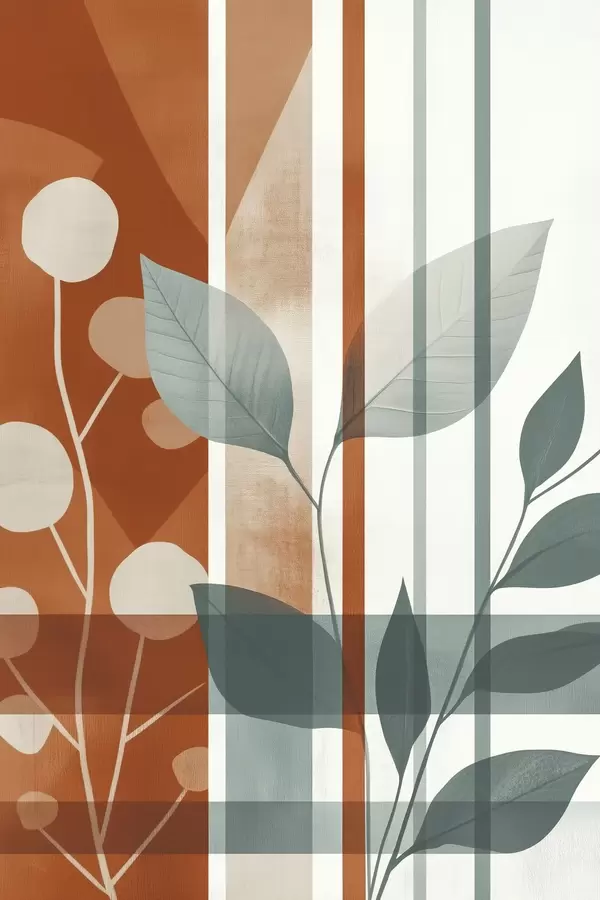 Poster Abstraktion mit Zweigen und Blättern f47248