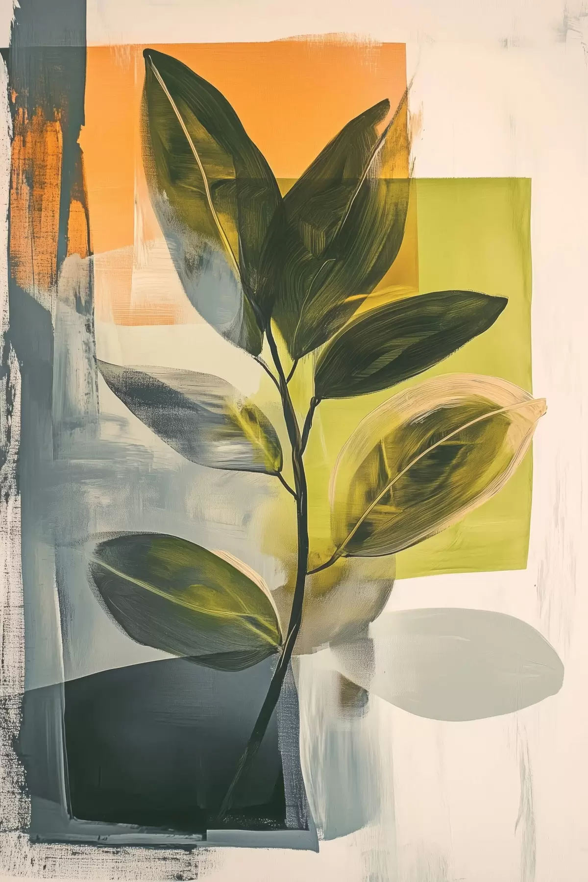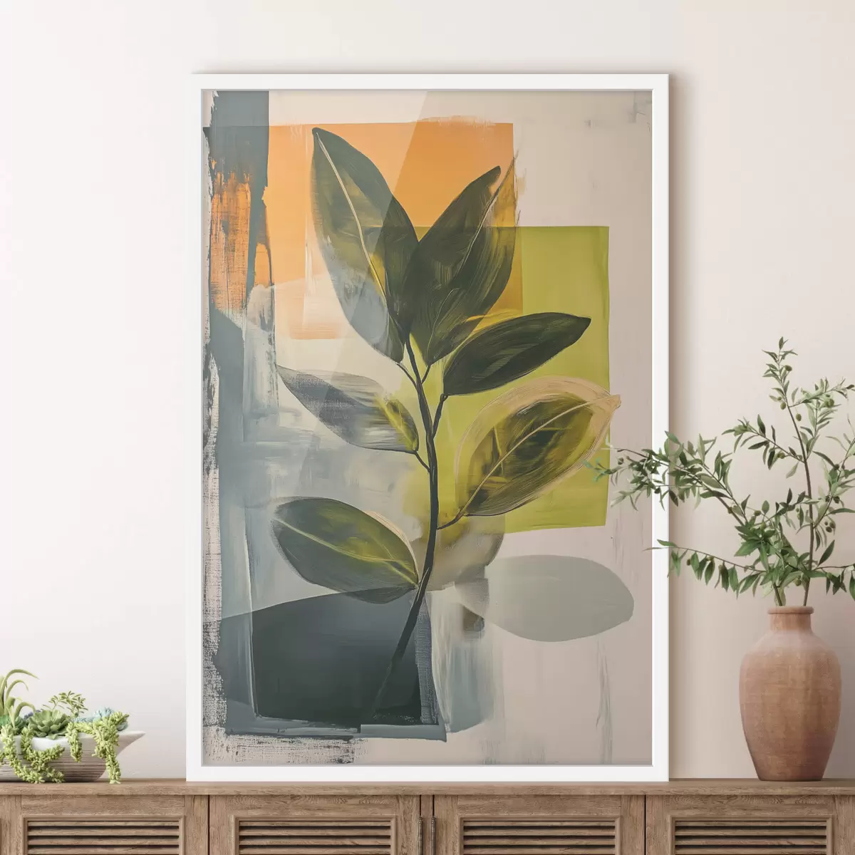 Poster Ein Zweig mit Blättern vor einem abstrakten Hintergrund Nr f47249