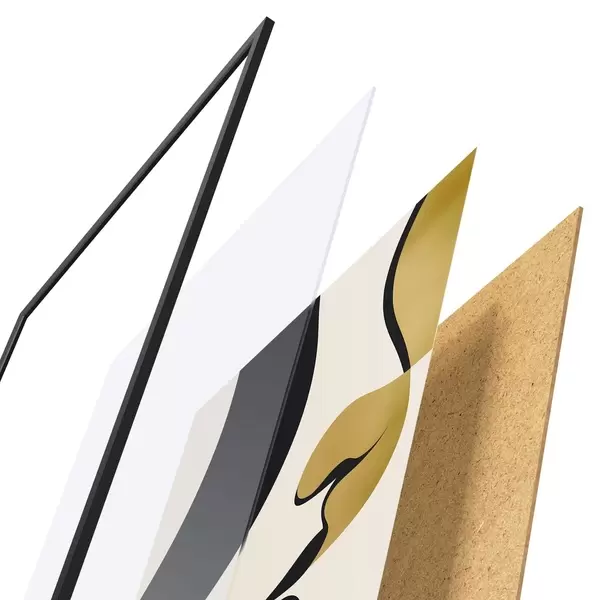 Das Poster besteht aus einem Rahmen, Plexiglas, einem gedruckten Bild und einer Rückwand aus Spanplatten. Dank der Halterungen auf der Rückseite kann das Poster sofort an die Wand gehängt werden.