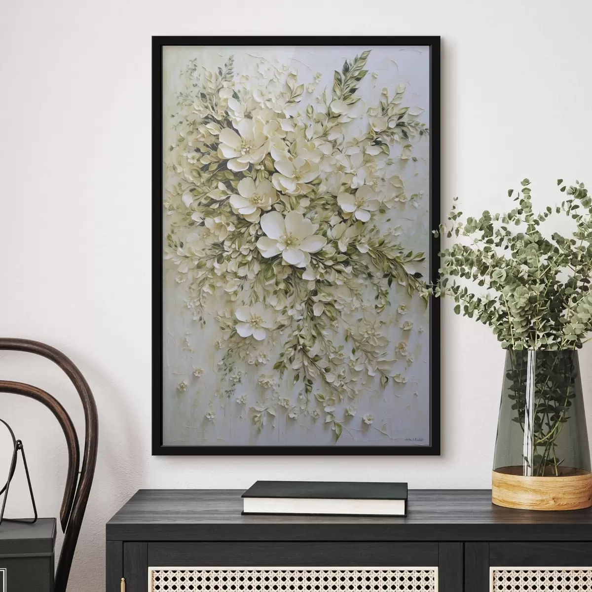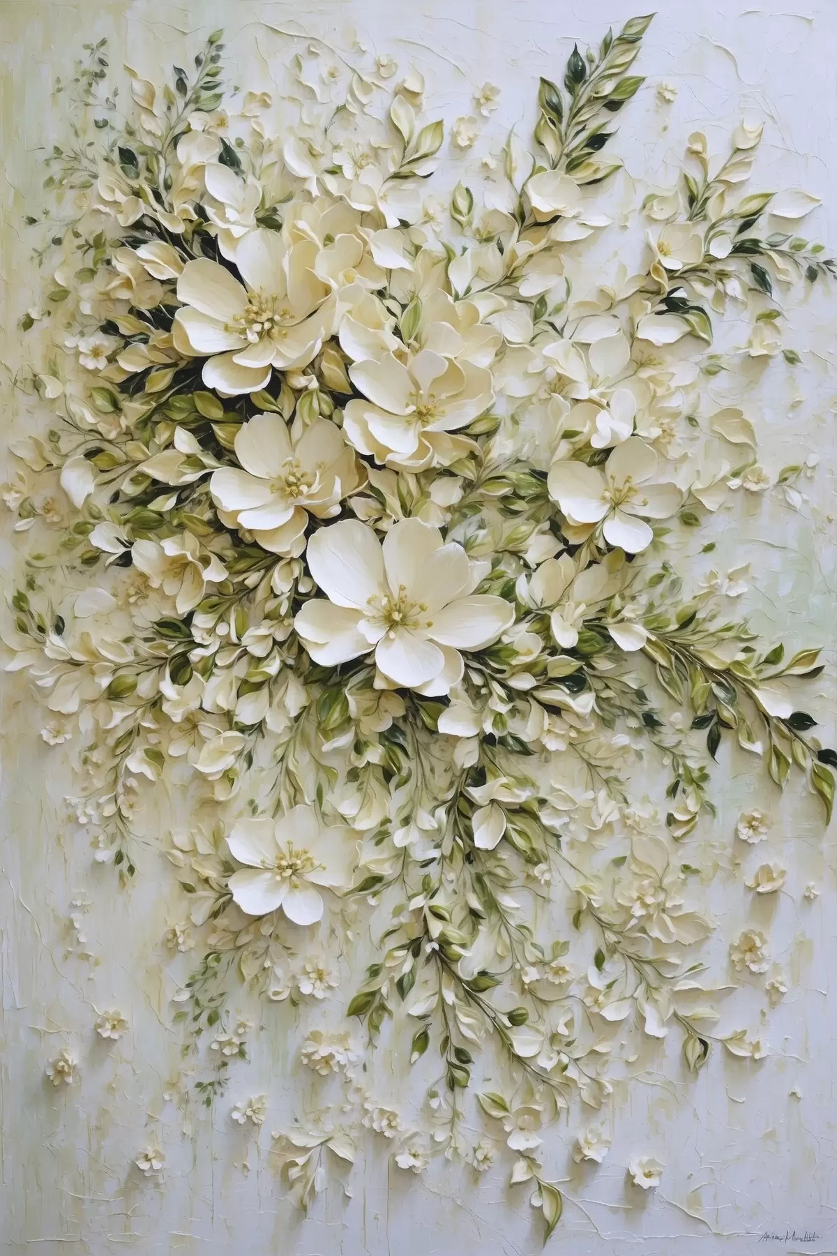Poster Große Komposition aus cremefarbenen Blumen und Blättern Nr f47267