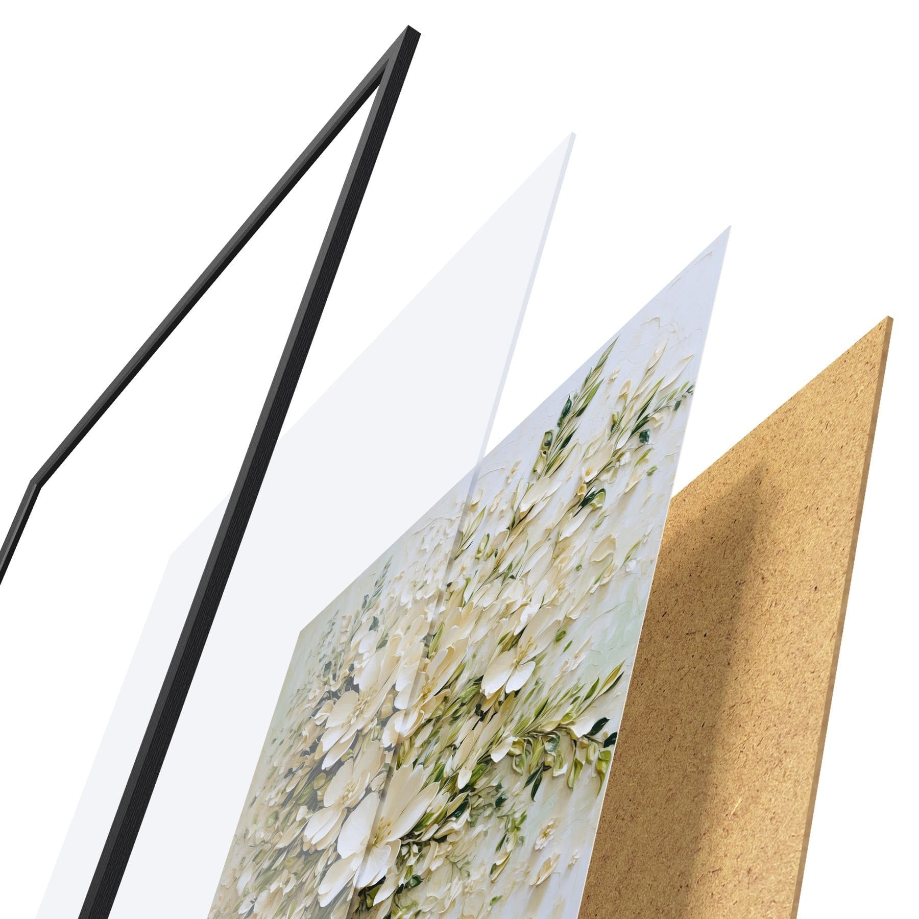 Das Poster besteht aus einem Rahmen, Plexiglas, einem gedruckten Bild und einer Rückwand aus Spanplatten. Dank der Halterungen auf der Rückseite kann das Poster sofort an die Wand gehängt werden.