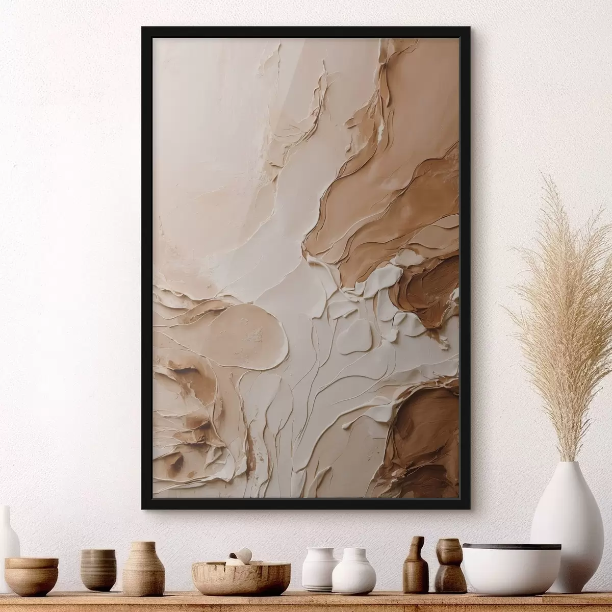 Poster Beigefarbene strukturierte Striche mit glatten Linien Nr f47274